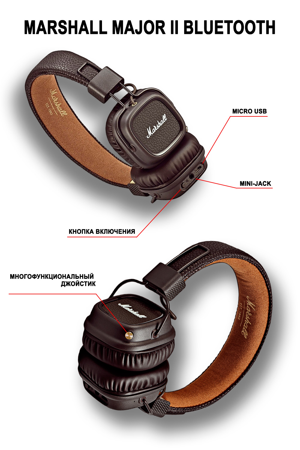 Накладные беспроводные наушники Marshall Major II Bluetooth brown – это современные, высокотехнологичные наушники с великолепным качеством звука!